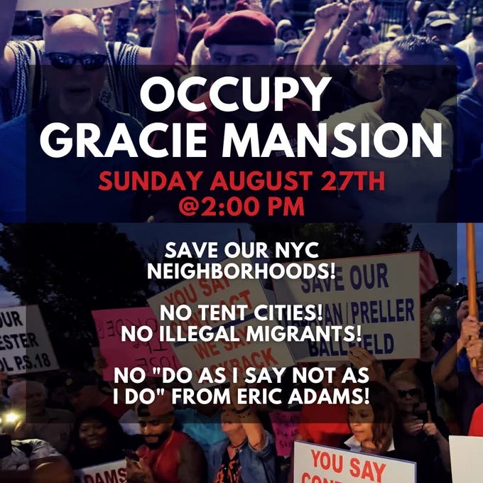 🚨August 27th, 2023 - Cafecito Break, Indie Media Reporters, and New Yorkers were denied access to attend the Occupy Gracie Mansion Protest hosted by Curtis Sliwa, Scott LoBaido, John Matland, and John Tabacco. The purpose of this rally was to raise awareness over the urgent humanitarian crisis rapidly unfolding in NY. Over 100, 000 “migrants” have arrived in NY. Our social service systems are overwhelmed. If we can not care for the thousands of children in the NY shelter system, how can care / support the thousands and thousands staying in NY?