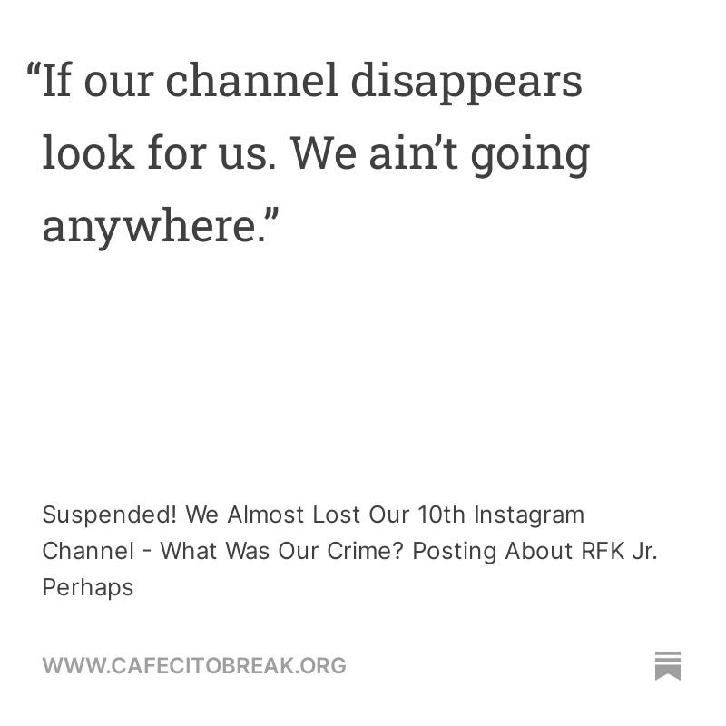 Suspended! We Almost Lost Our 10th Instagram Channel - What Was Our Crime? Posting About RFK Jr. Perhaps