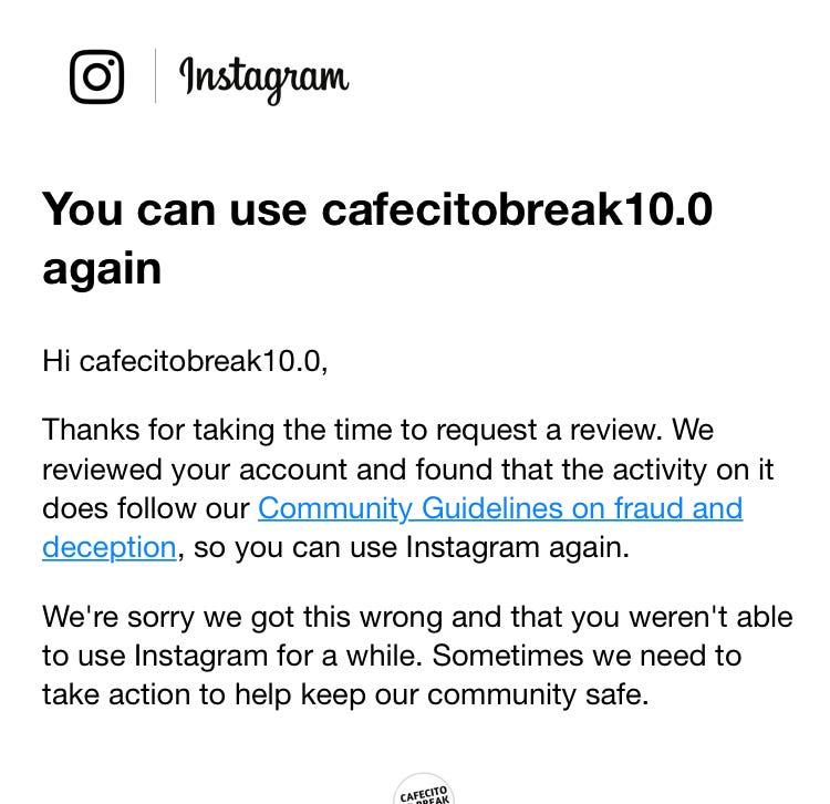 For us at Cafecito Break, we were the recipient of this kind of censorship yet again.